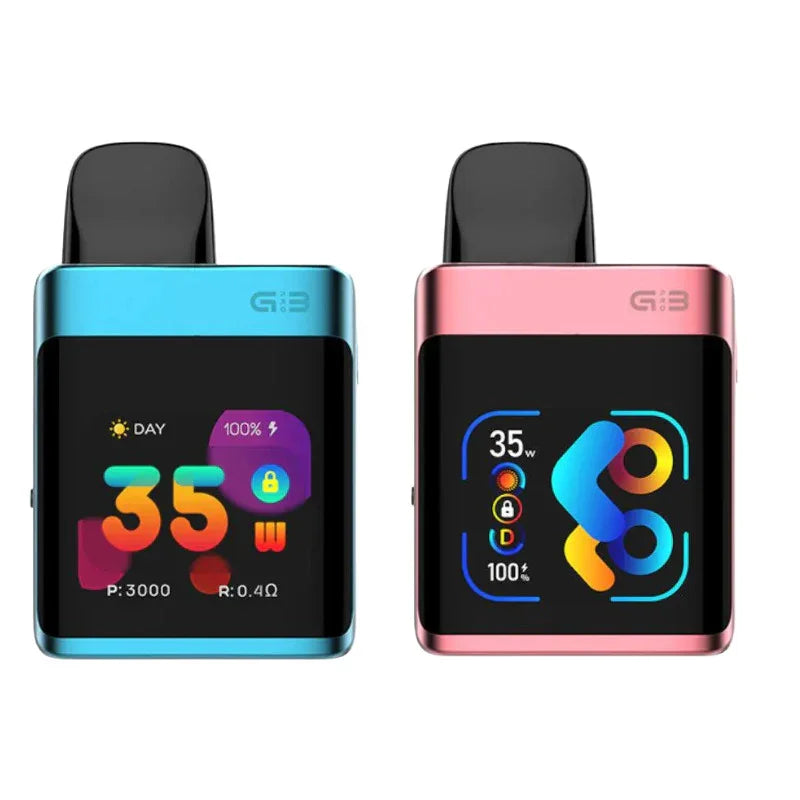 The Caliburn G3 Pro Koko Vape is a smart compact pod kit featuring a TFT display screen, adjustable power output, and variable wattage mode up to 35w. It is designed for vapers who want more control, flavour, and flexibility in one compact device.